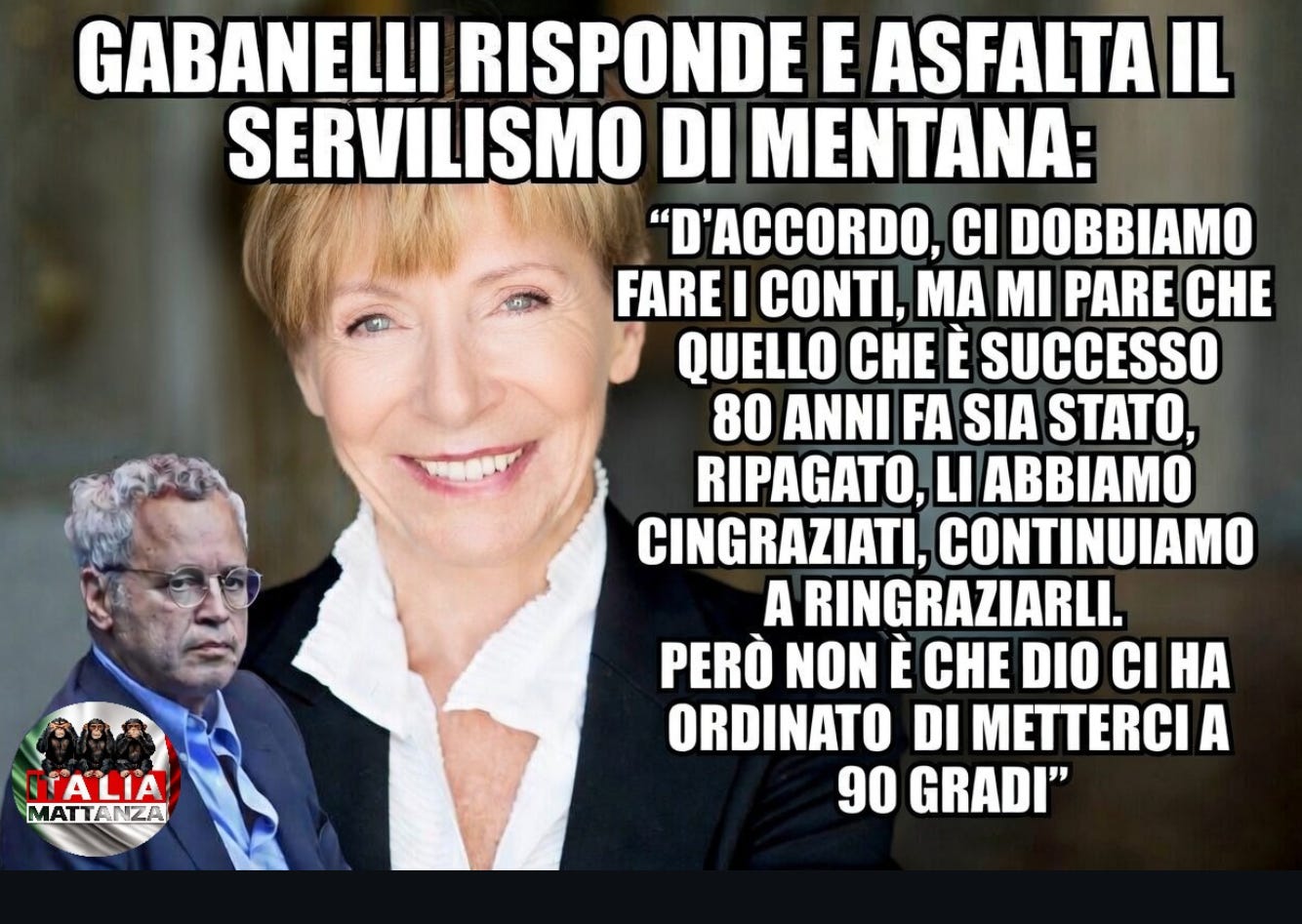 Conoscendo la Gabanelli, giornalista di specchiata fede progressista, viene addirittura il dubbio che possa addirittura essere stata una gaffe cercata. Avanza un’ipotesi. Per bucare lo schermo dell’indifferenza geopolitica, Milena si è immolata sull’altare del pol. corr.. E ci è riuscita, perché in effetti lo spezzone è girato, sulle ali dello stupore e della comicità che genera quel pizzico di grottesco. Costruisco un cavallo di Troia (eheh) con una parolaccia visiva, e intanto faccio girare sui telefoni di mezza Italia, anche la parte più impolitica, il cuore del messaggio, cioè che dobbiamo liberarci dalla morsa degli Usa.